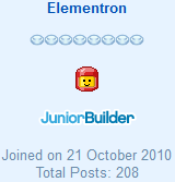 Elementron is a former LEGO Universe Forum Moderator, who joined the LEGO Message Boards on October 21, 2010. His profile is no longer viewable, and as such, little current information is available on him.